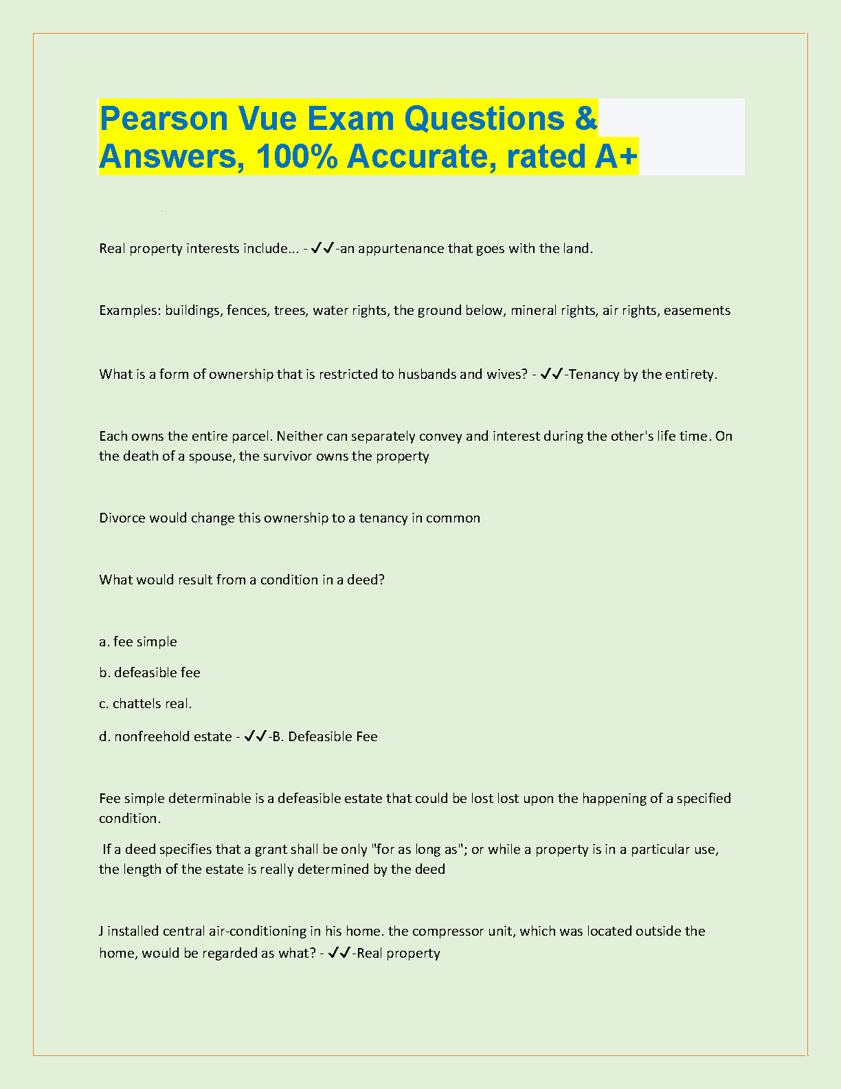 Pearson Vue Exam Questions & Answers 100% Accurate, Rated A+ for the 2024/2025 Academic Year