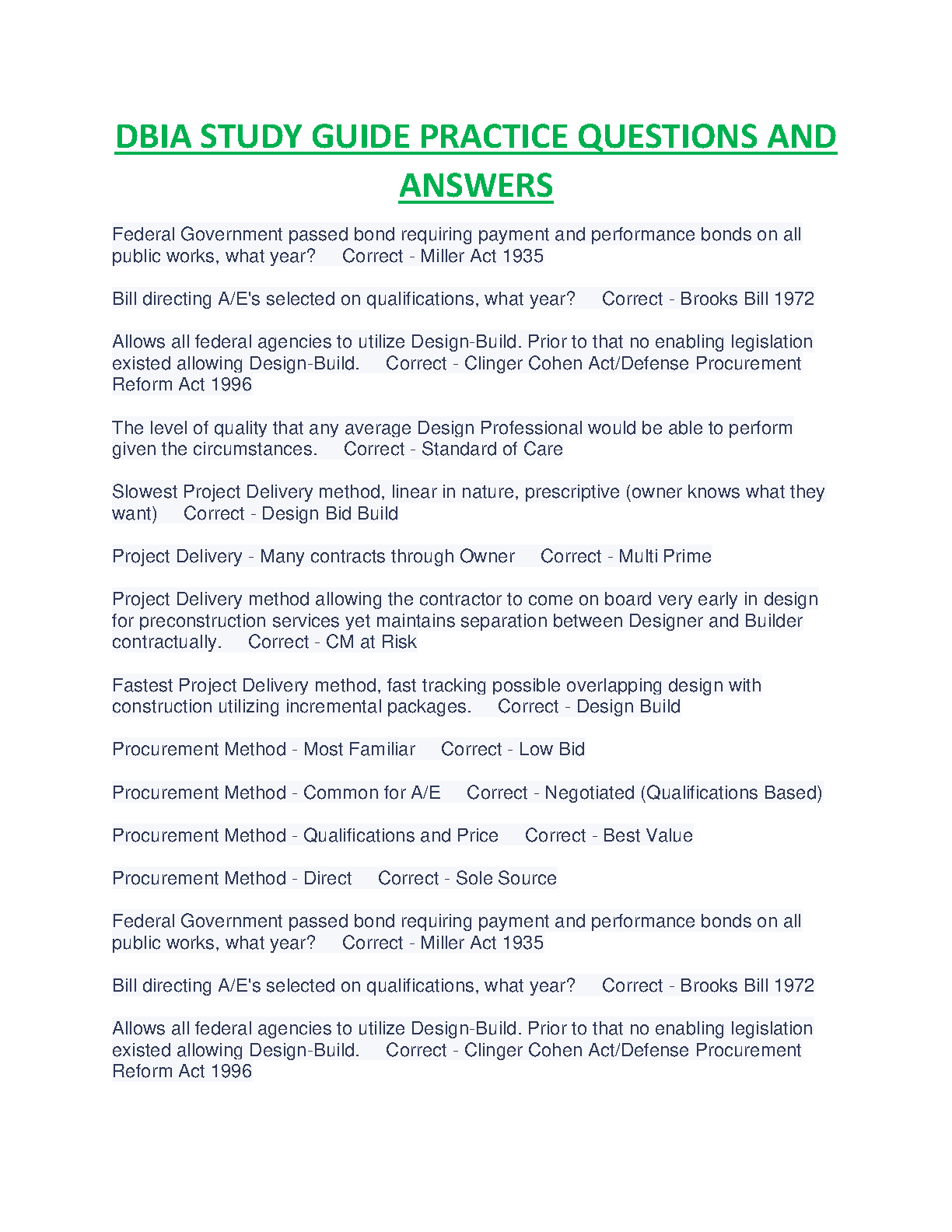 DBIA Study Guide Practice Questions and Answers - 2024/2025 Edition - by [Insert Authors Here]