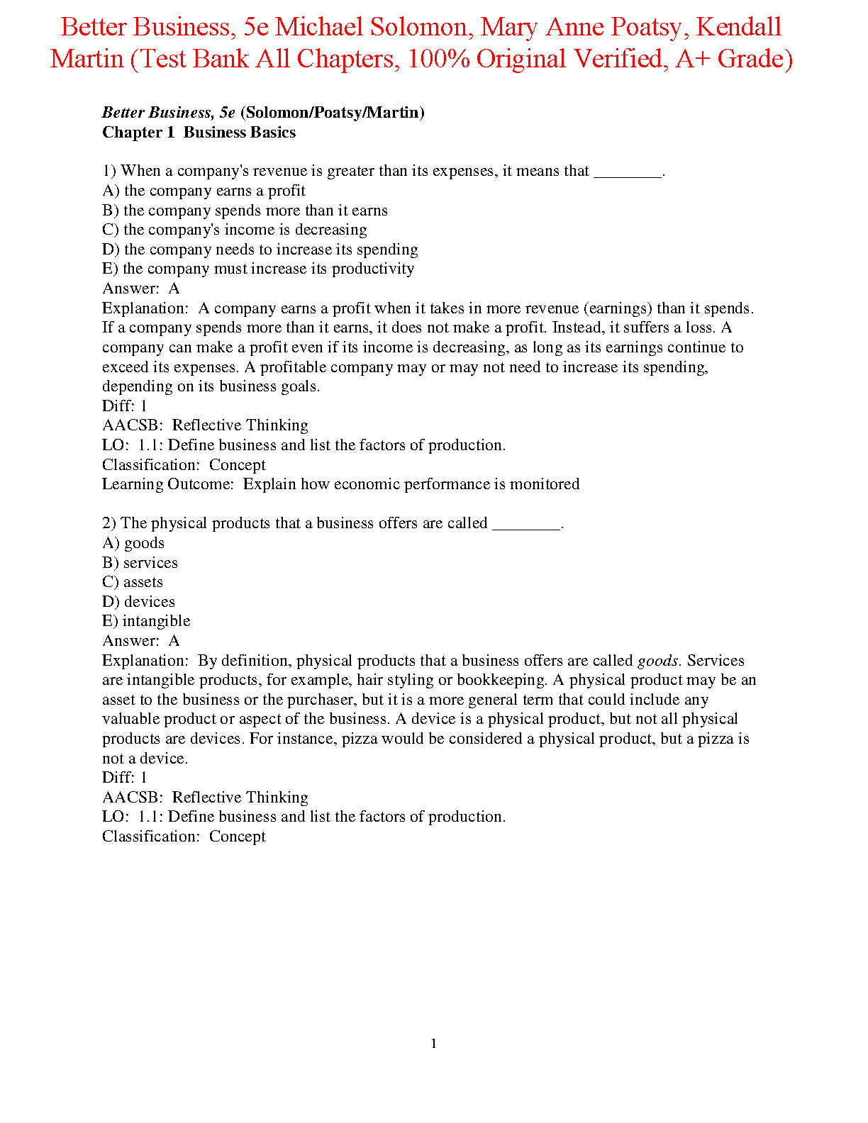 This comprehensive test bank for Better Business 5e by Michael Solomon, Mary Anne Poatsy, and Kendall Martin provides a wealth of practice questions and answers, helping you master the key concepts and ensure exam success on your first try.