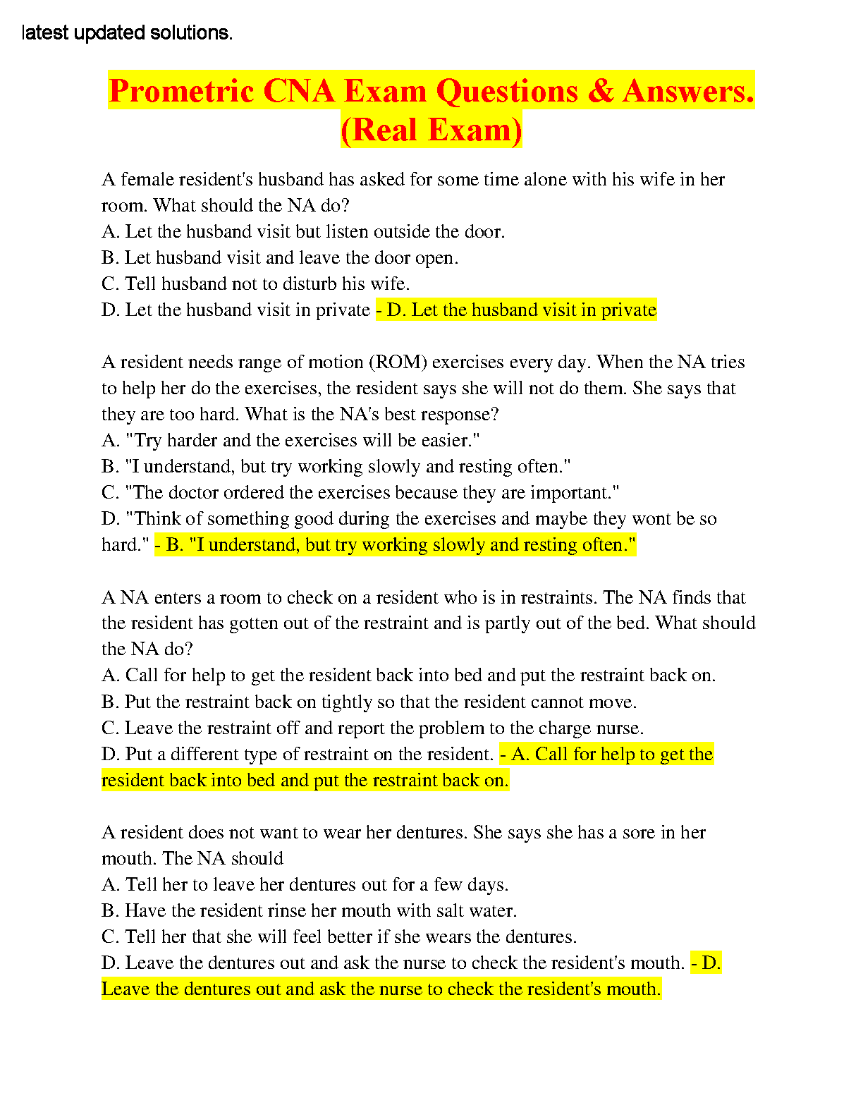 Ace your Prometric CNA exam with this comprehensive resource packed with real exam questions and answers. Get expert-level preparation with our updated practice questions covering crucial concepts, ensuring you pass the exam on your first try. Avoid the stress of resits and gain the confidence to excel in your CNA career.