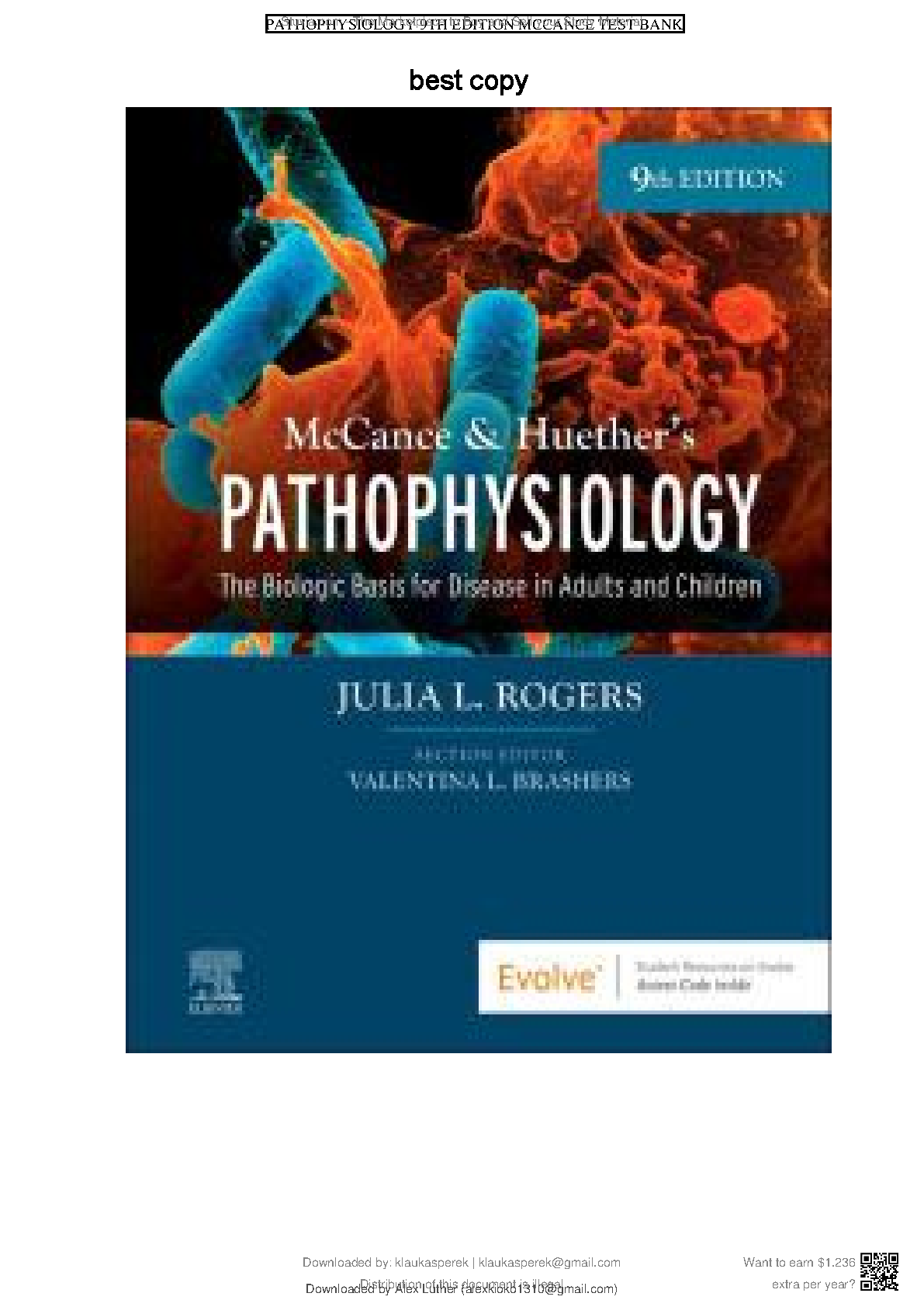 McCance & Huether's Pathophysiology: The Biologic Basis for Disease in Adults and Children 9th Edition, by Julia L. Rogers, Valentina L. Brashers
