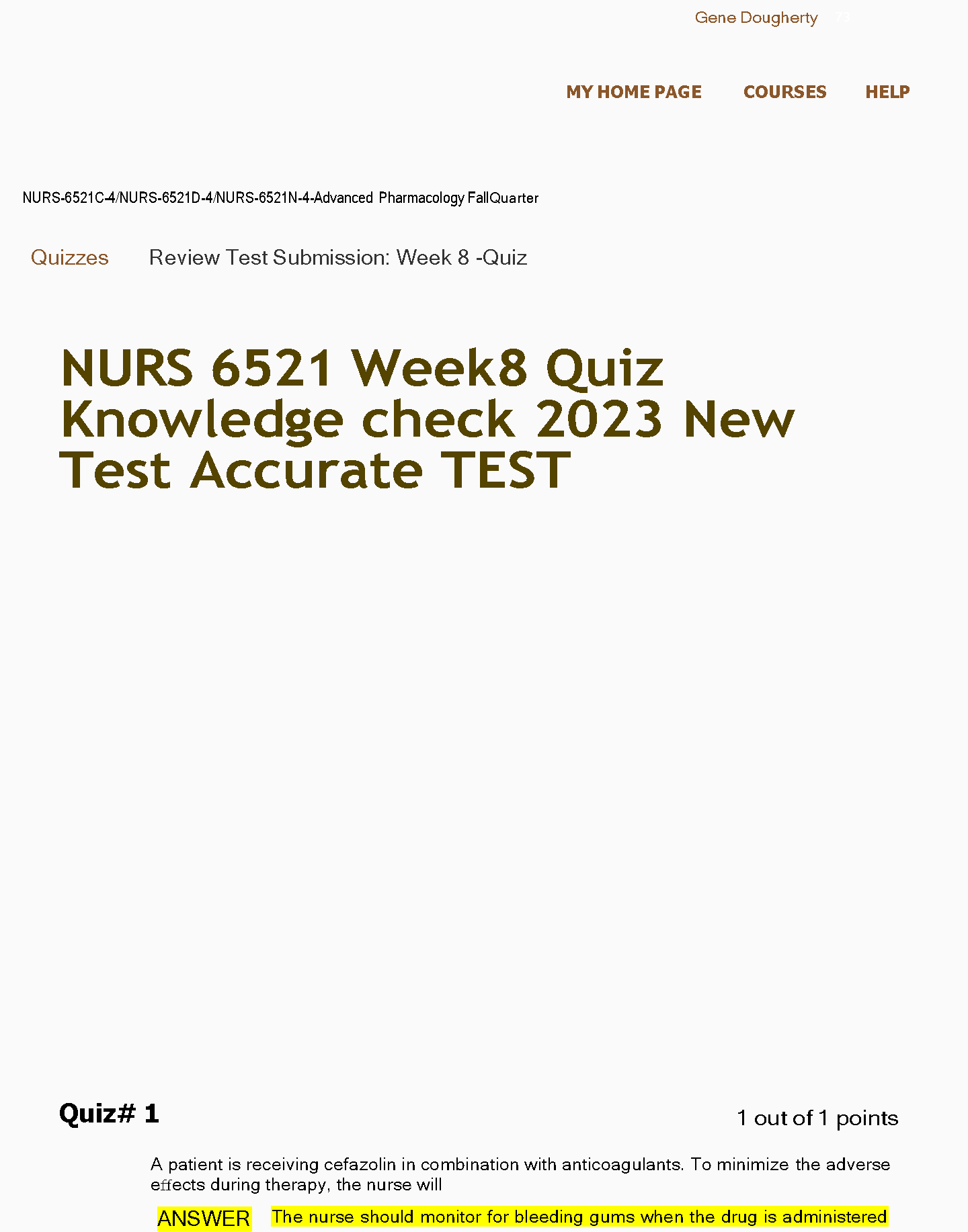 NURS 6521 Week 8 Quiz - Knowledge Check 2023 New Test Accurate TEST by Gene Dougherty