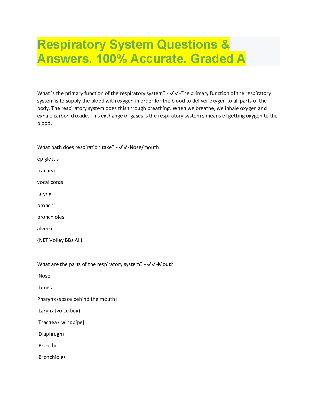 Respiratory System Questions and Answers: Graded A. This resource is a comprehensive collection of questions and answers on the respiratory system, designed to help students ace their exams.