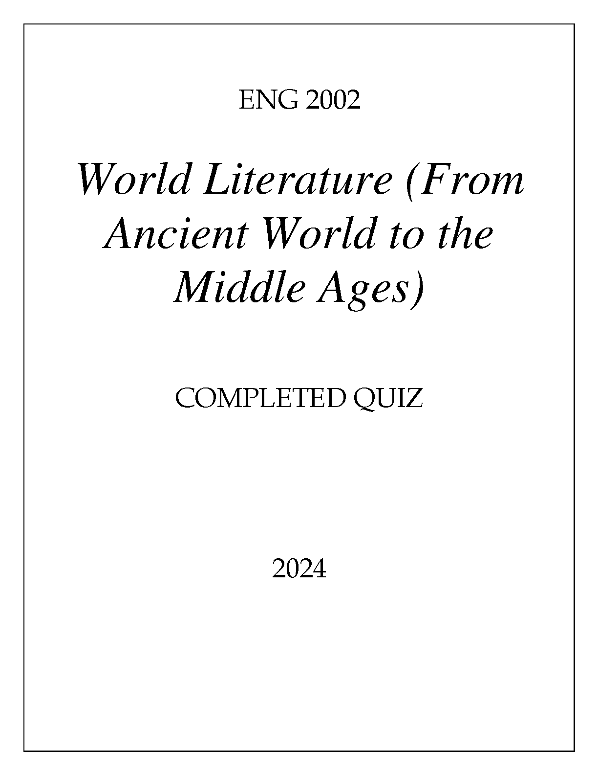 ENG 2002 World Literature (From Ancient World to the Middle Ages) 2024 Edition Complete Quiz - Ace Your Exam on the First Attempt!
