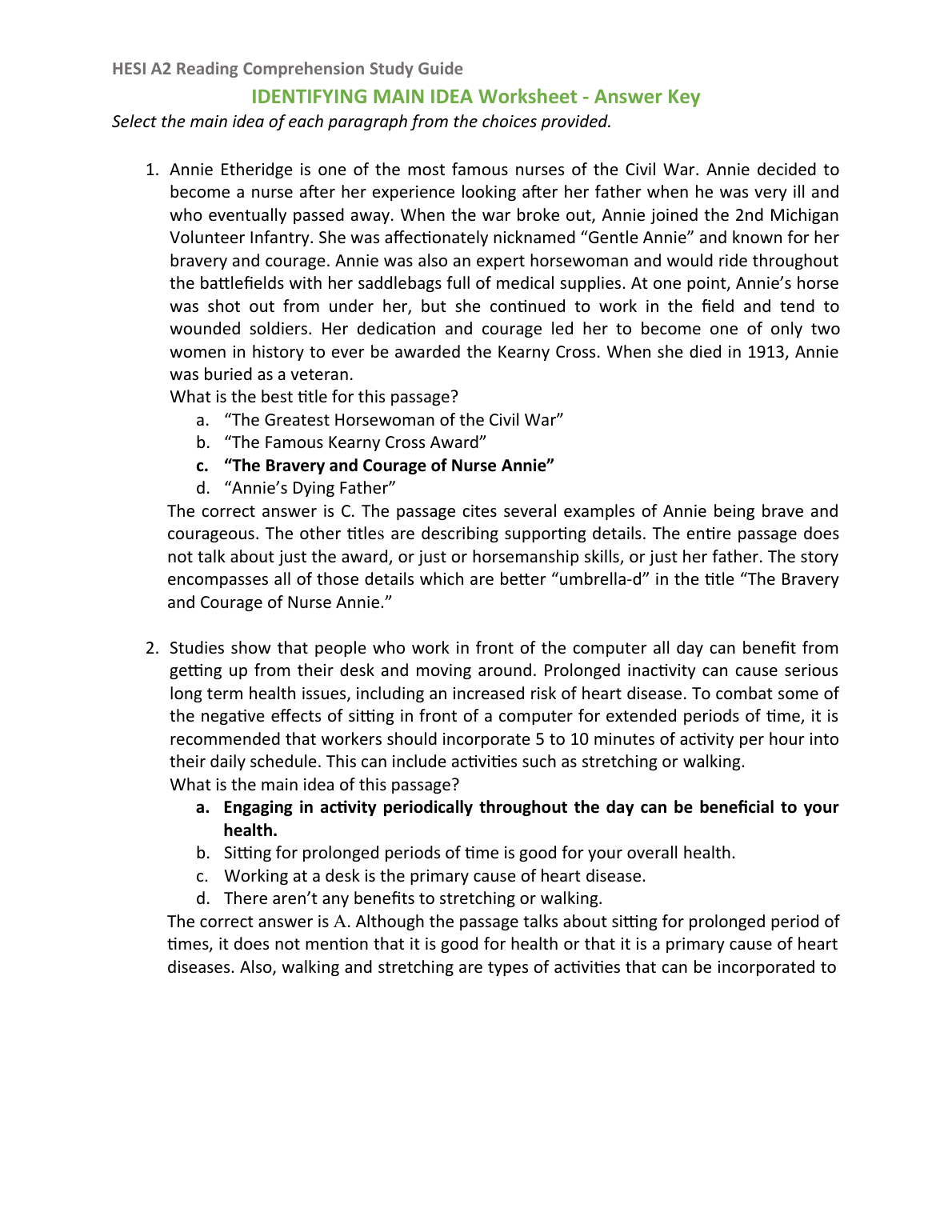 HESI A2 Full Reading Comprehension Guide COMPLETE SOLUTION RATED A+