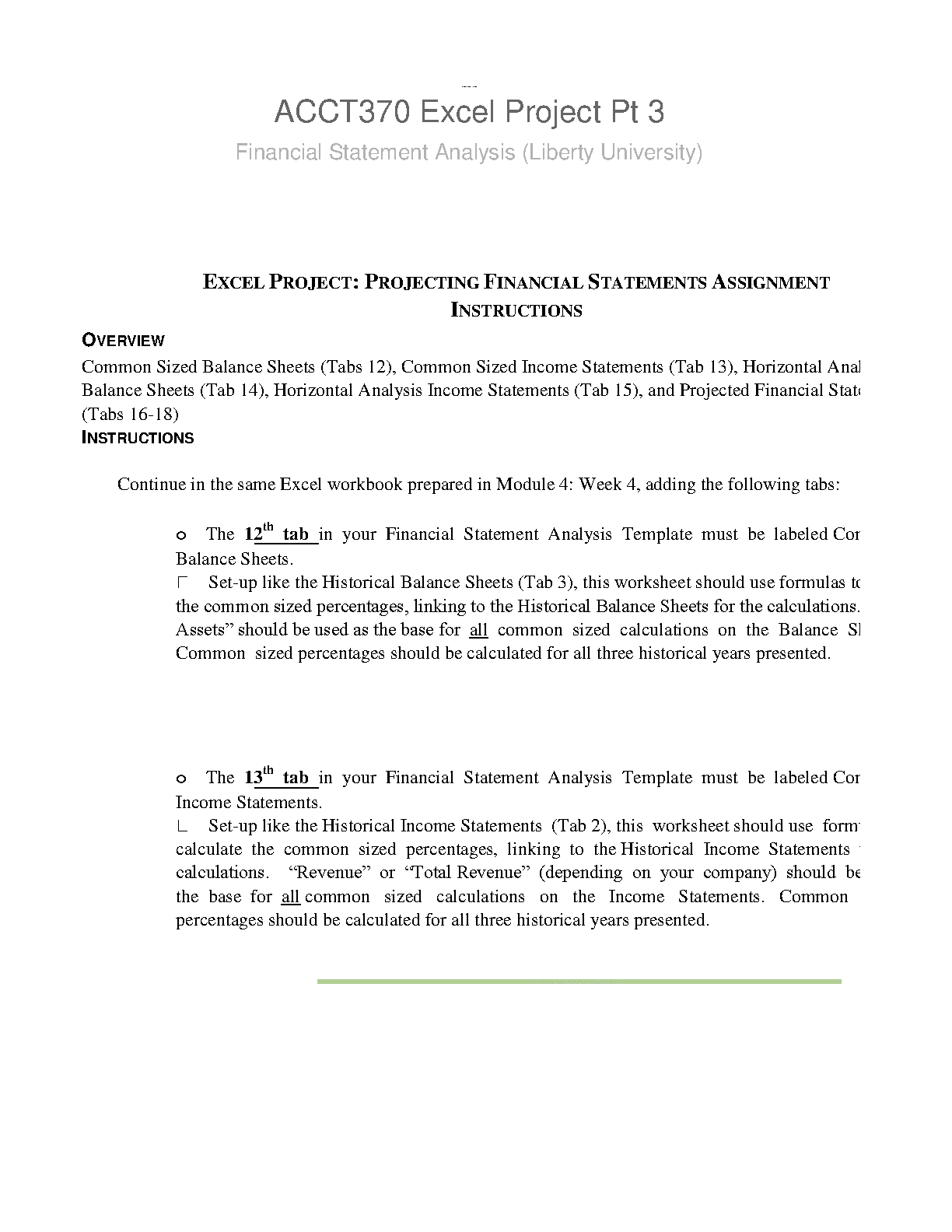 ACCT370 Excel Project Pt 3: Projecting Financial Statements Assignment Instructions 2024-2025