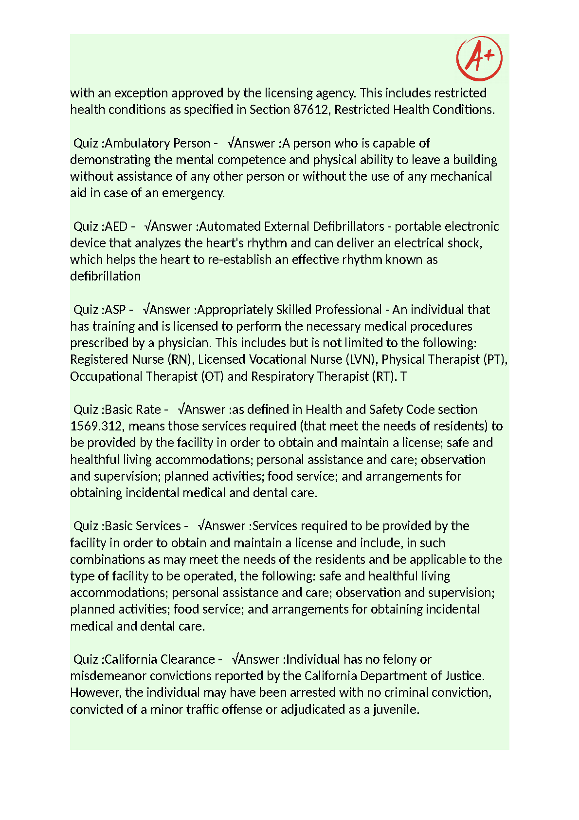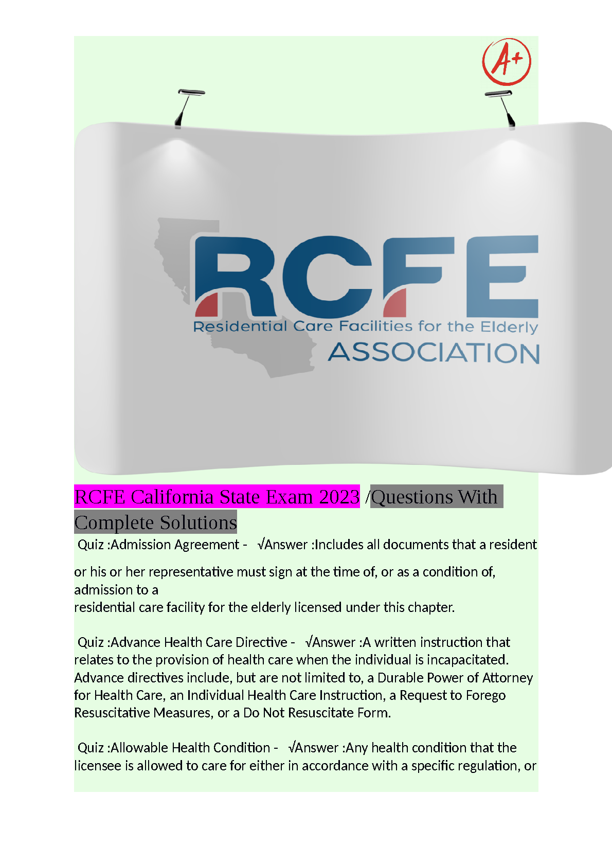 RCFE California State Exam 2023 Complete Solutions - Questions with Answers