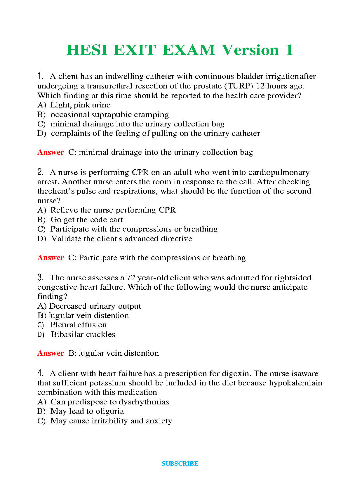 HESI Exit Exam Version 1 Practice Questions for 2024/2025 - Pass Your Exam on the First Attempt