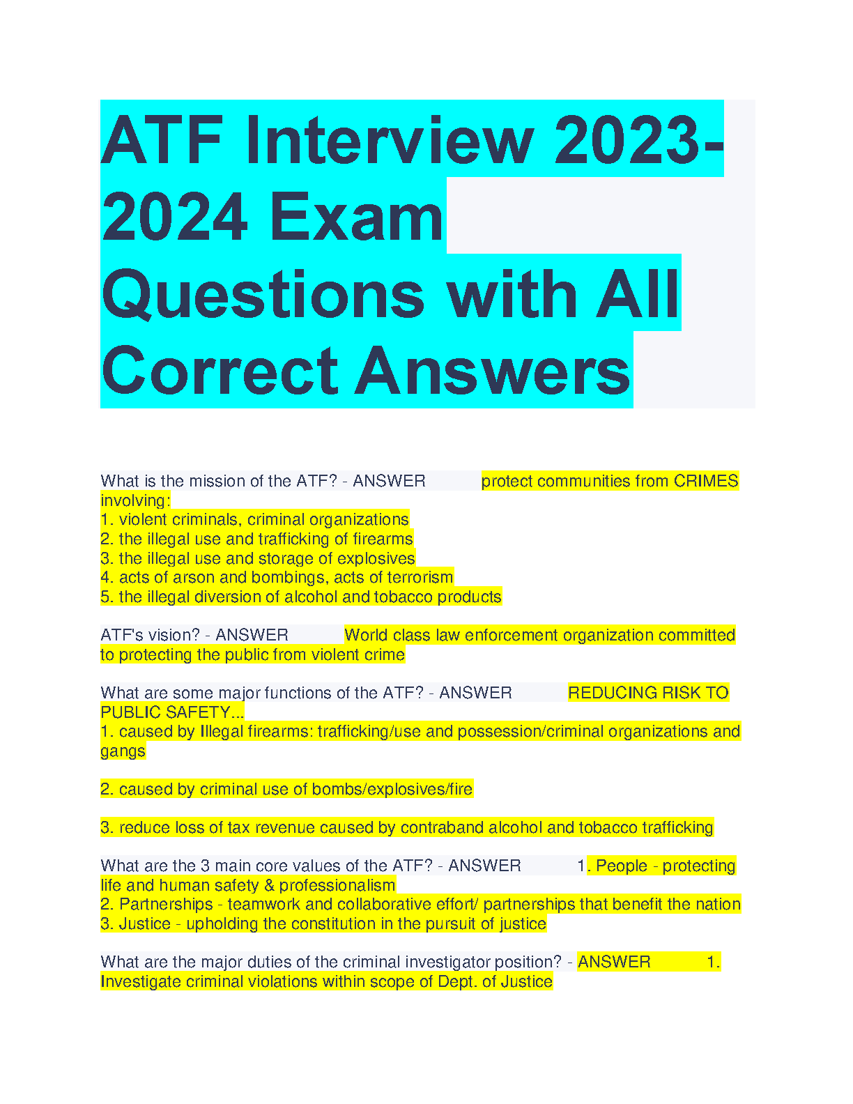 ATF Interview 2023-2024 Exam Questions with All Correct Answers - Ace Your Exam on the First Try!