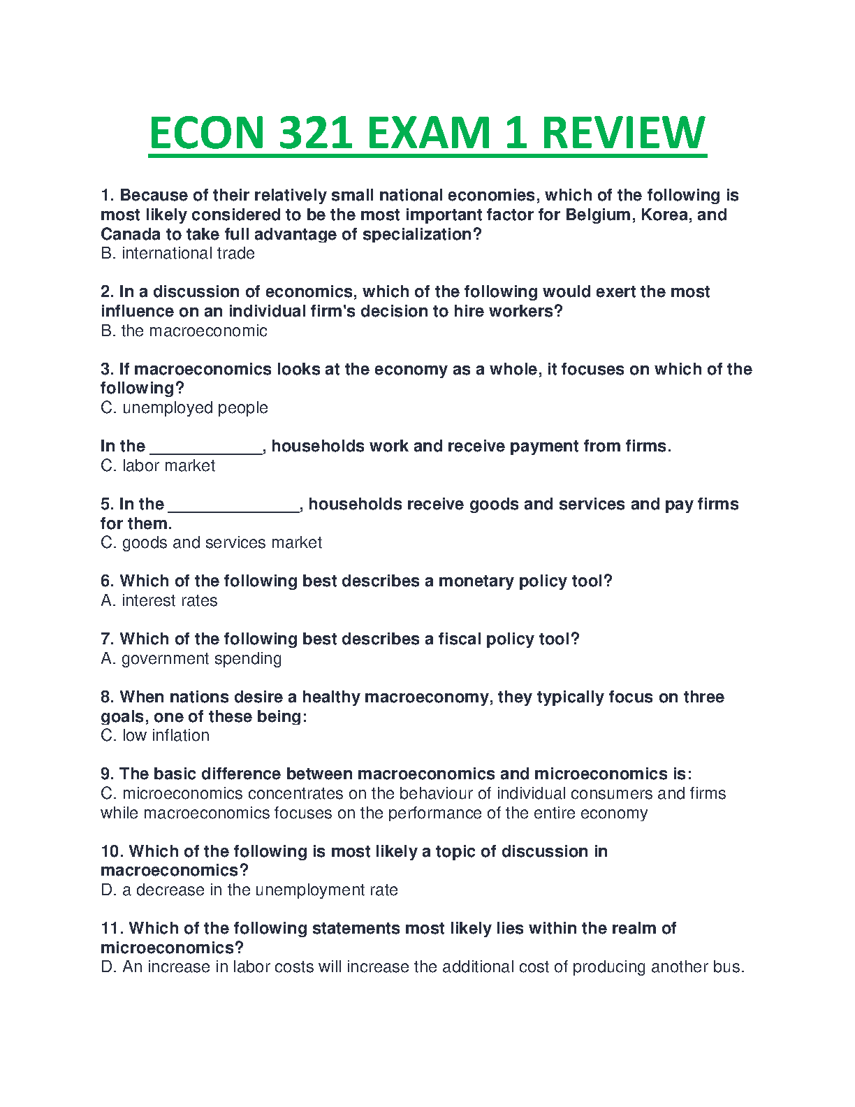 ECON 321 Exam 1 Review - 2024/2025 Edition: Ace Your Exam on the First Attempt!