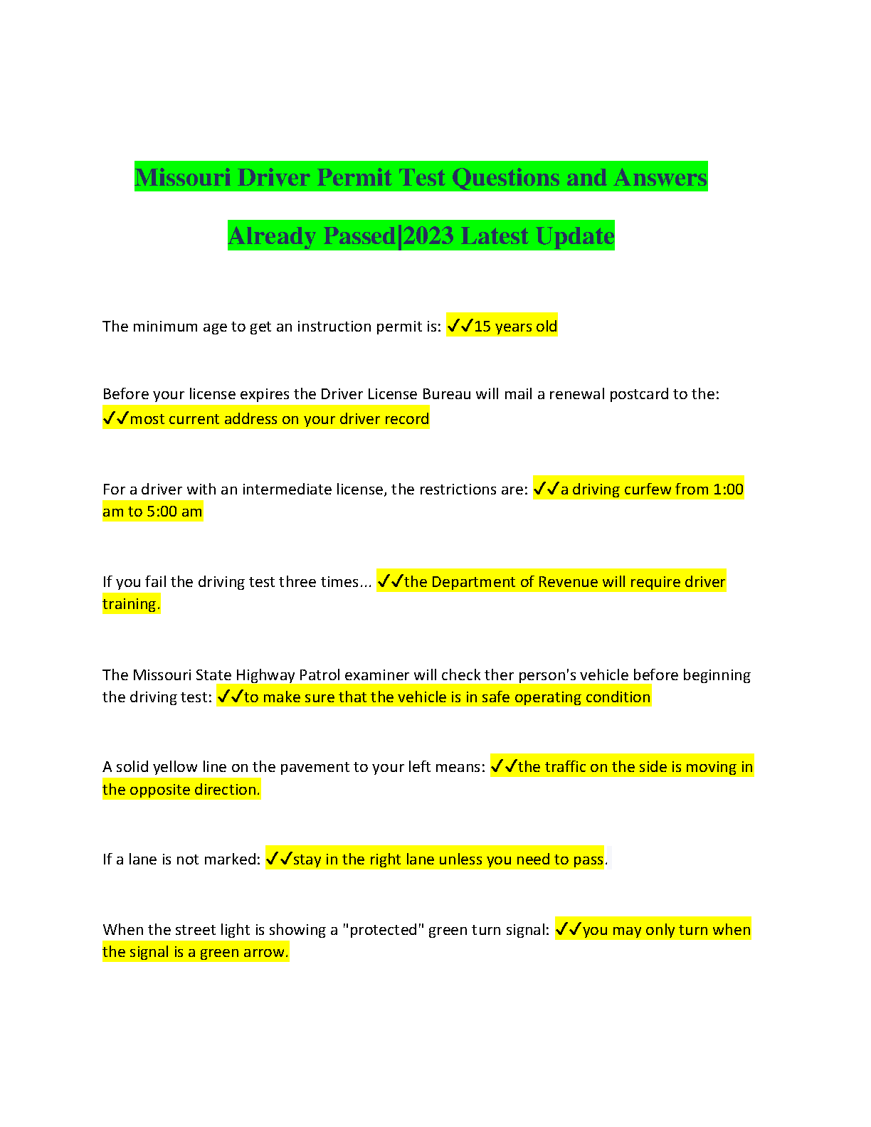Missouri Driver Permit Test Questions and Answers: 2023 Edition - Pass Your Exam on the First Try