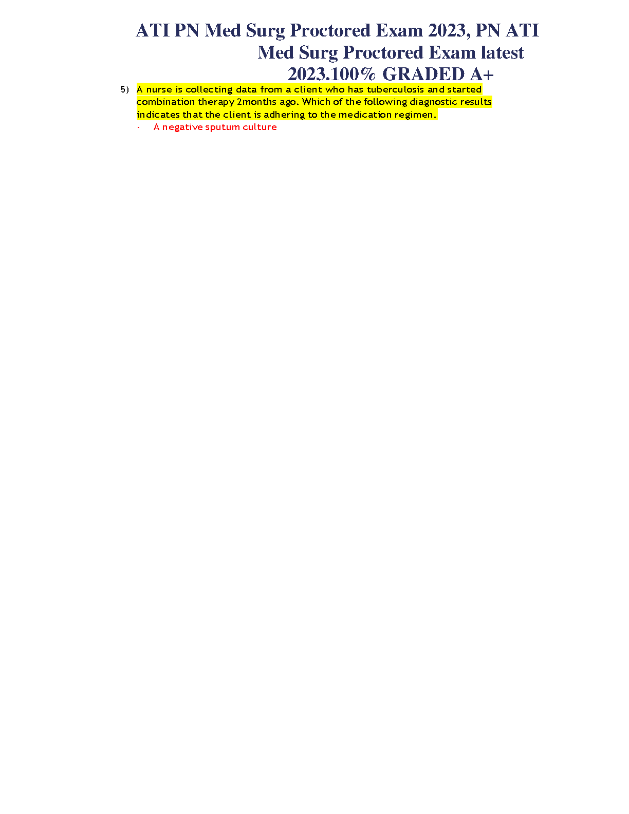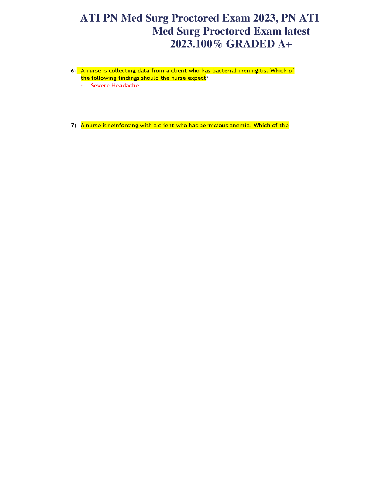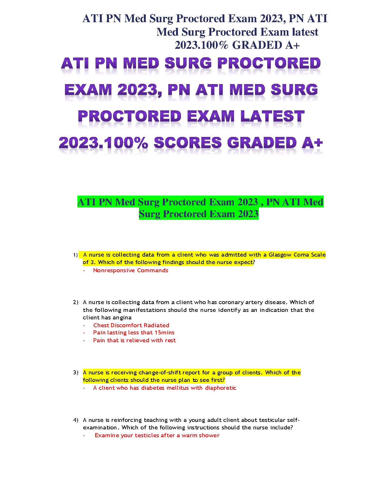ATI PN Med Surg Proctored Exam 2023, Latest Edition, PN ATI Med Surg Proctored Exam 2023 By Linda Anne