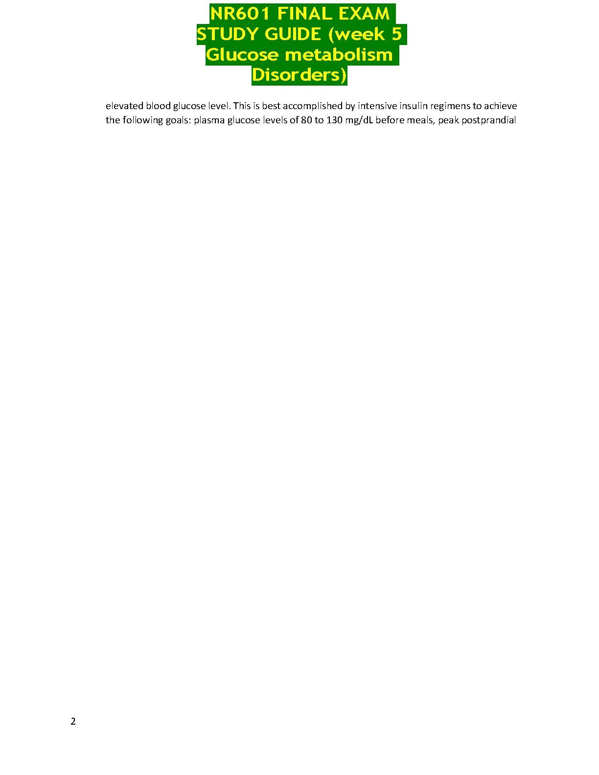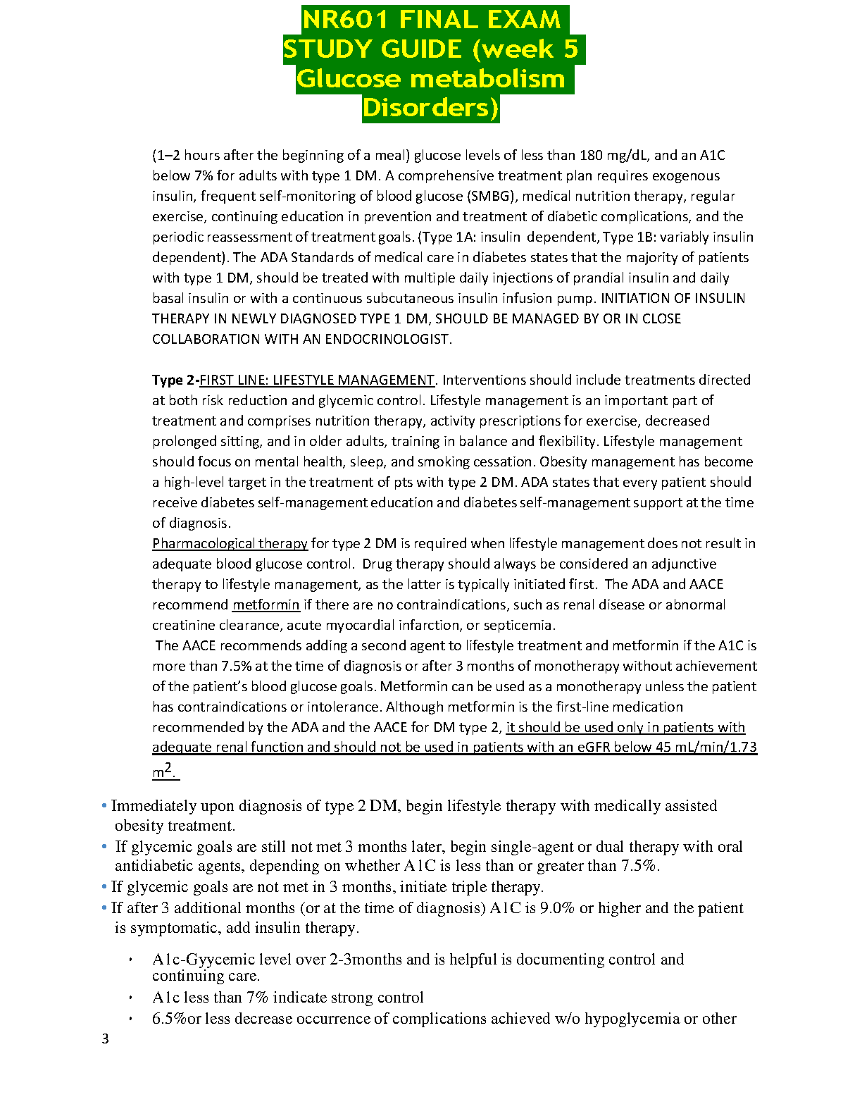 NR601 Final Exam Study Guide (Week 5 Glucose Metabolism Disorders) by [Authors of the book] - 2024/2025 Edition