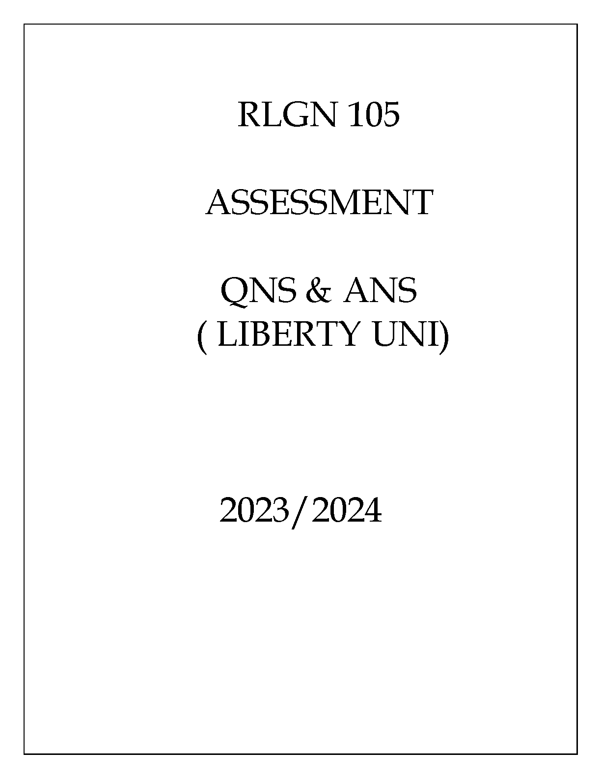 RLGN 105 Assessment Questions & Answers (Liberty University) 2023-2024 Edition - Ace Your Exams on the First Attempt