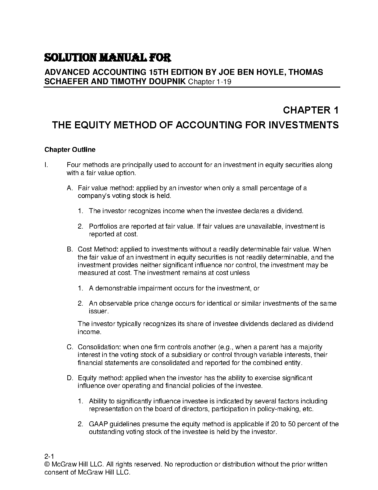 Solution Manual for Advanced Accounting 15th Edition by Joe Ben Hoyle, Thomas Schaefer and Timothy Doupnik
