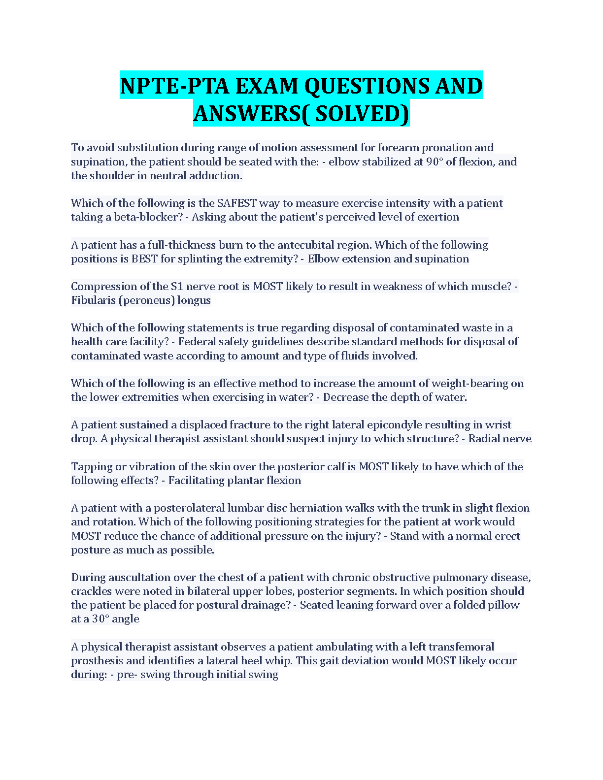 NPTE-PTA Exam Questions and Answers (Solved) - 2024/2025 Edition - Pass on the First Attempt!