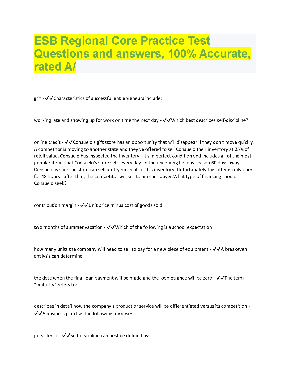 ESB Regional Core Practice Test Questions and Answers, 100% Accurate, Rated A/ - 2024/2025 Edition