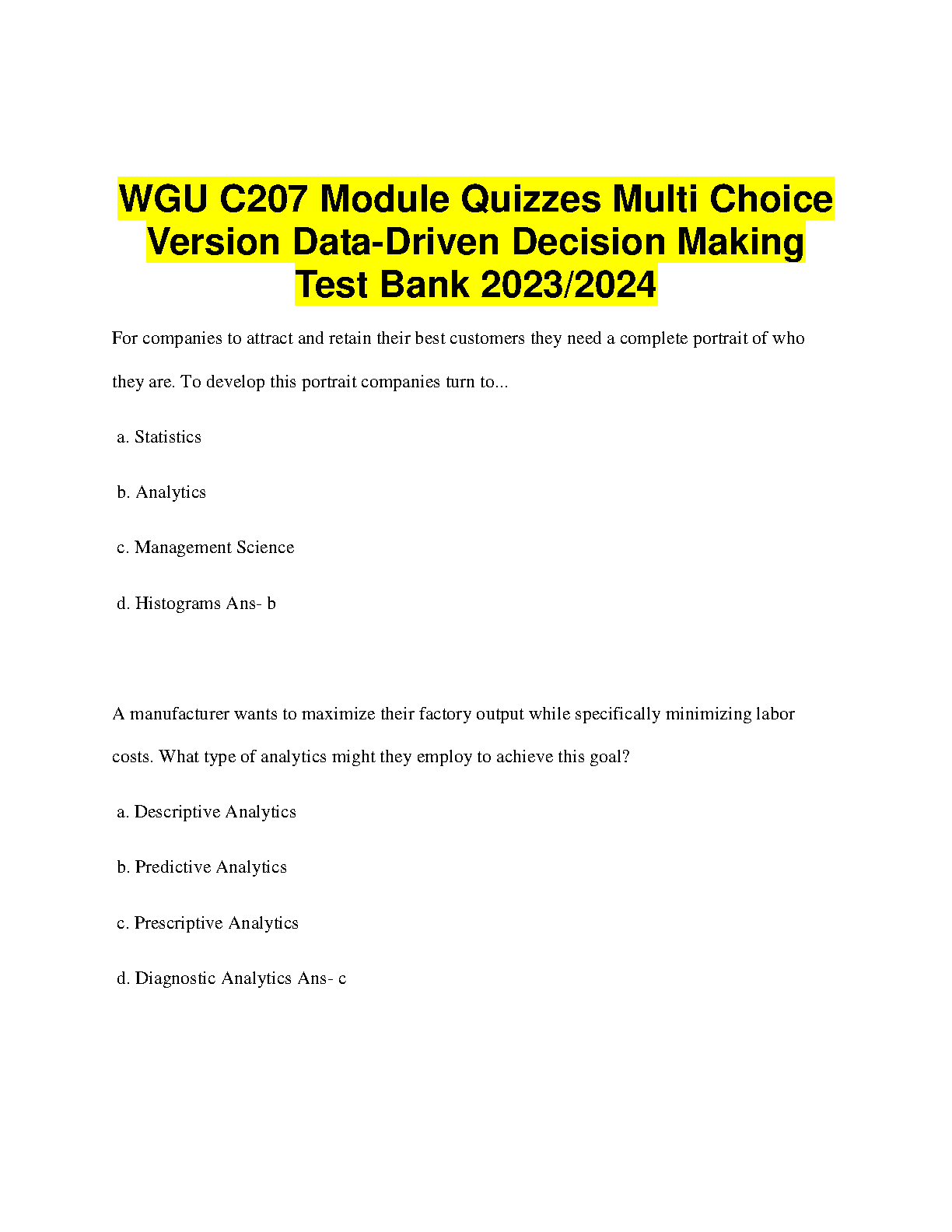 WGU C207 Data-Driven Decision Making Test Bank 2023/2024 - Latest Edition