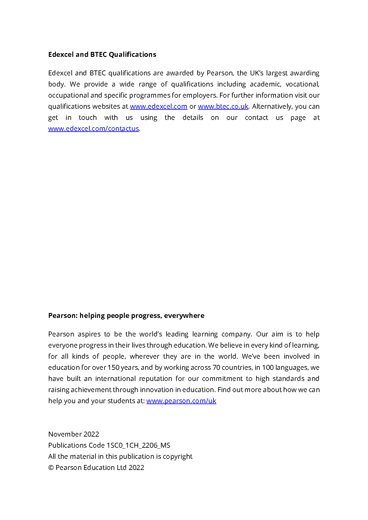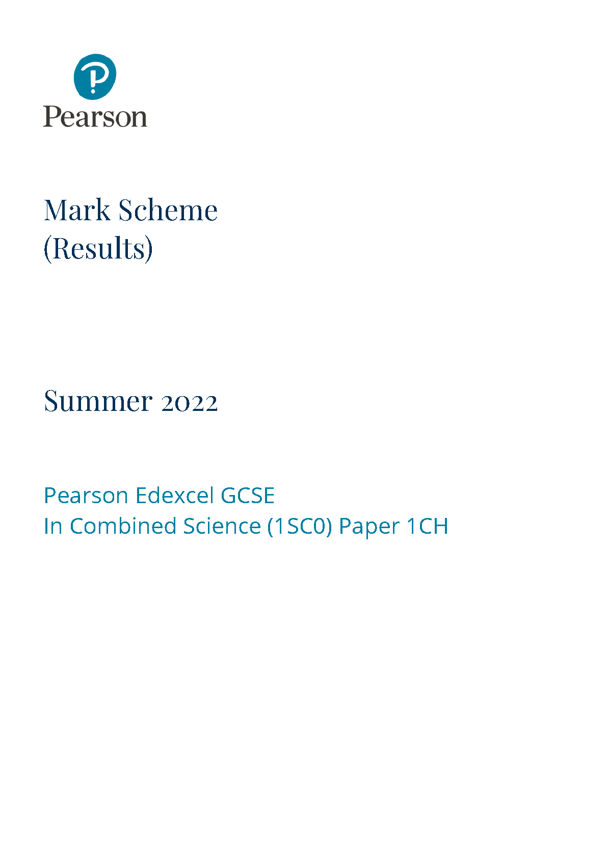 Edexcel GCSE In Combined Science (1SCO) Paper 1CH Mark Scheme Summer 2022 - Ace Your Exams with Ease!