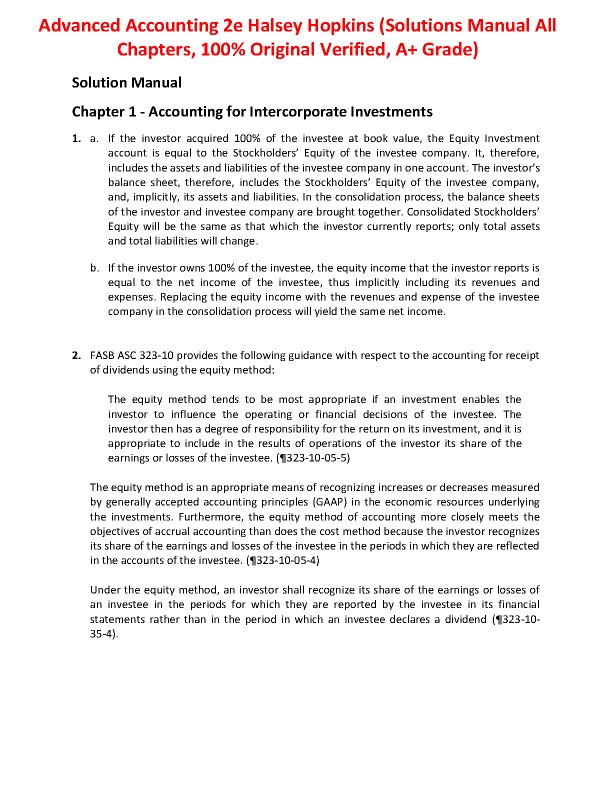 Advanced Accounting 2e by Halsey Hopkins - Solution Manual (Chapters, 100% Original Verified, A+ Grade)