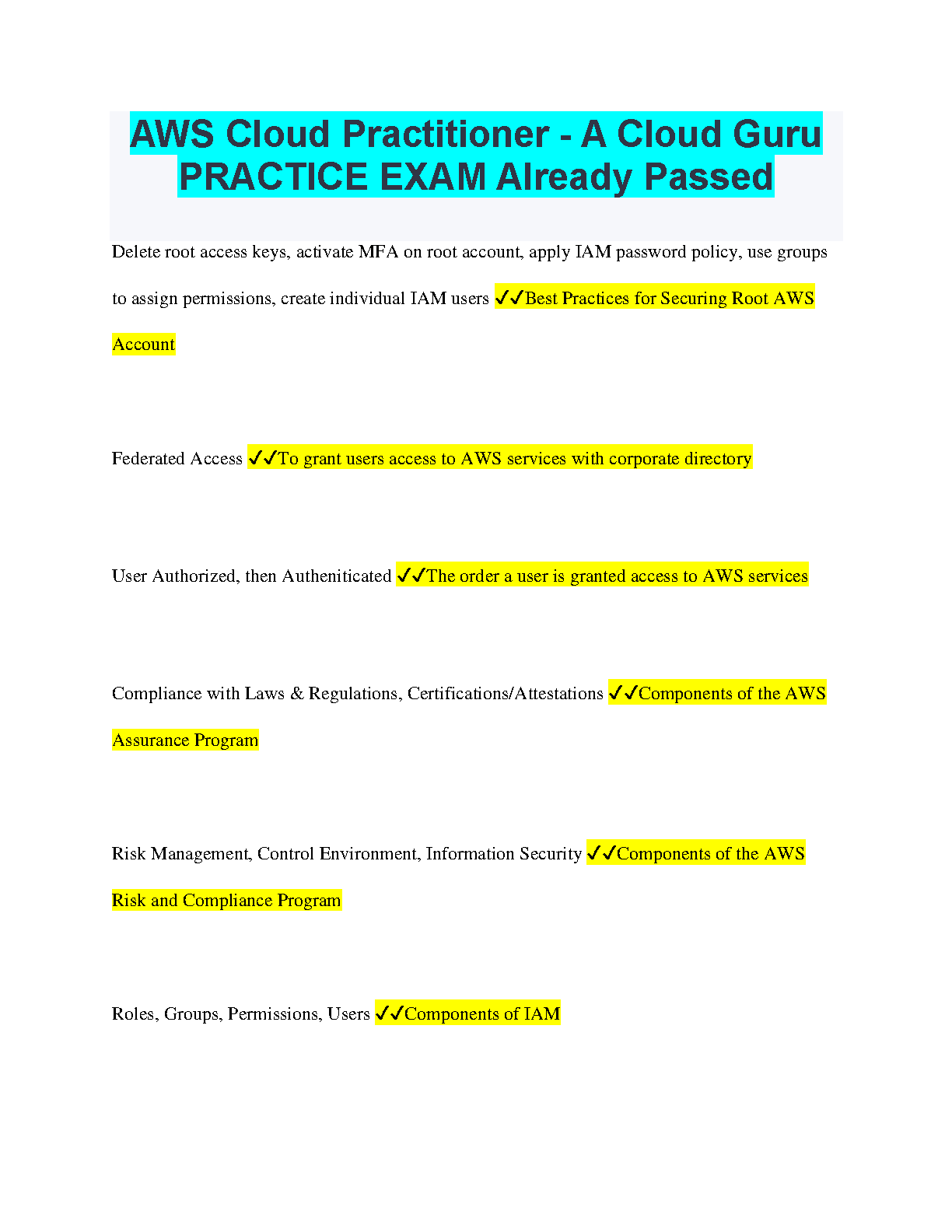 AWS Certified Cloud Practitioner Practice Exam: A Cloud Guru - Pass on the First Attempt
