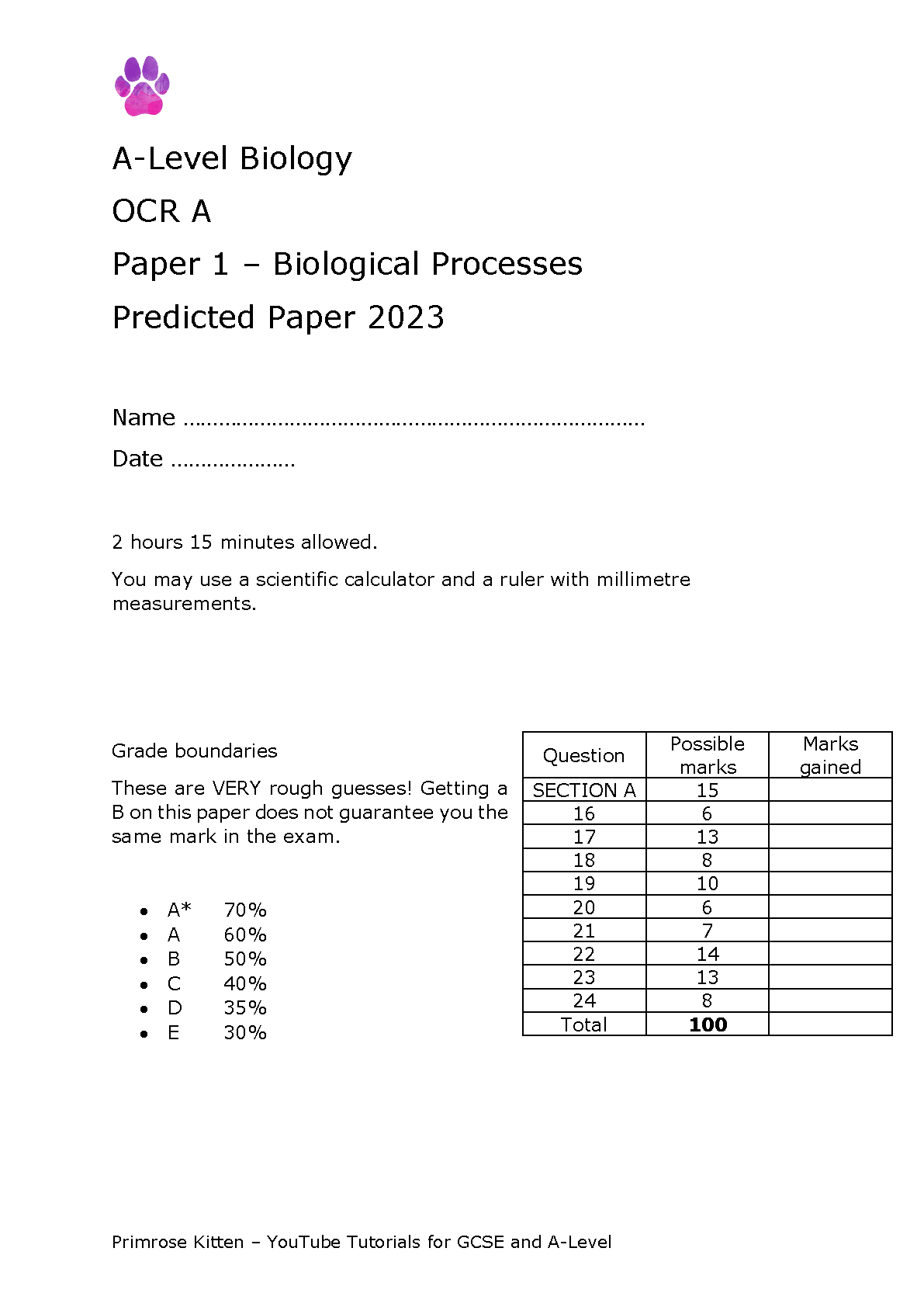 OCR A LEVEL BIOLOGY A PAPER 1 2023 QUESTION PAPER WITH MARK SCHEME(BIOLOGICAL PROCESSES). DOWNLOAD OFFICIAL AND VERIFIED OCR A LEVEL BIOLOGY PAPER 1 PREDICTED PAPER 2023 on www.hackedexam.com INSTANTLY.