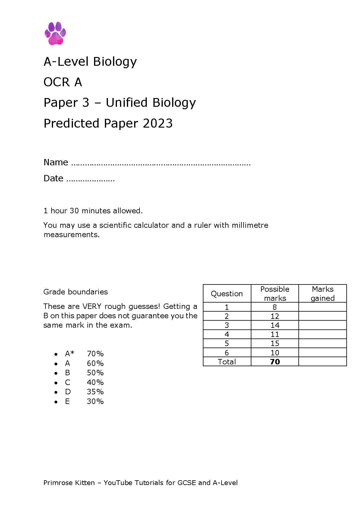 OCR A LEVEL BIOLOGY A PAPER 3 2023 QUESTION PAPER WITH MARK SCHEME(Unified Biology). DOWNLOAD OFFICIAL AND VERIFIED OCR A LEVEL BIOLOGY PAPER 3 PREDICTED PAPER 2023 on www.hackedexams.com INSTANTLY.