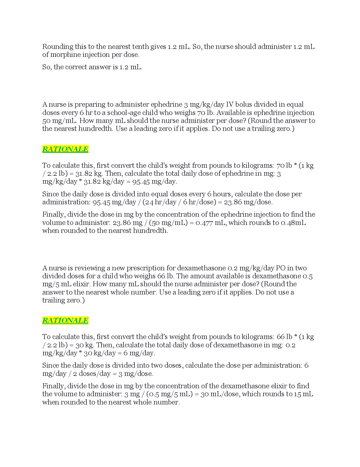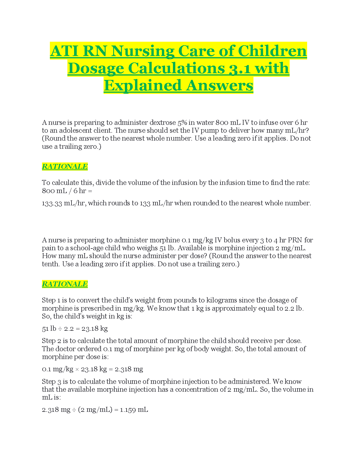 This comprehensive guide covers all the essential aspects of pediatric dosage calculations, offering clear explanations and step-by-step solutions for a wide range of clinical scenarios. With a focus on practical application, this resource empowers students to master dosage calculations and confidently administer medications to children in a variety of healthcare settings.
