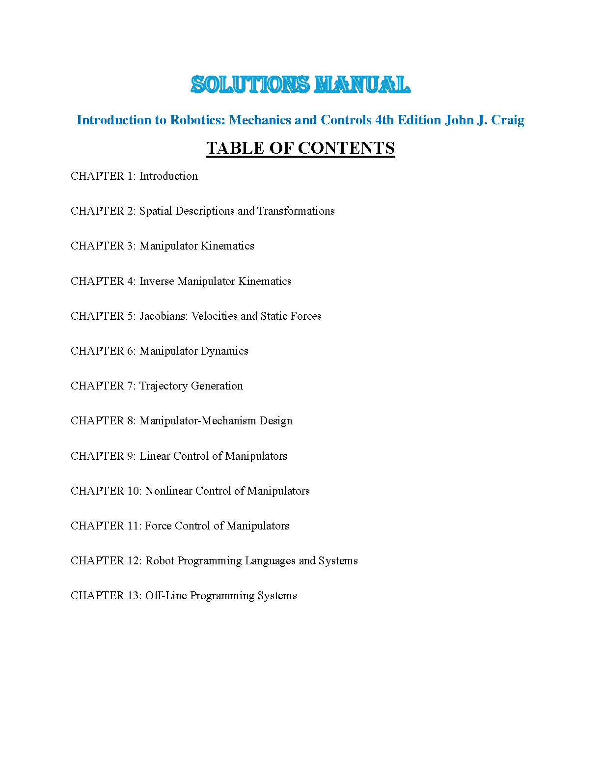 Ace your Robotics course with this comprehensive solutions manual! Get instant access to step-by-step solutions for all problems in "Introduction to Robotics: Mechanics and Control, 4th Edition" by John Craig. Understand the concepts, master the calculations, and ace your exams on the first attempt.