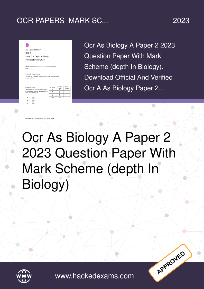 OCR AS BIOLOGY A PAPER 2 2023 QUESTION PAPER WITH MARK SCHEME (Depth in Biology). DOWNLOAD OFFICIAL AND VERIFIED OCR A AS BIOLOGY PAPER 2 PREDICTED PAPER 2023 on www.fliwy.com INSTANTLY.