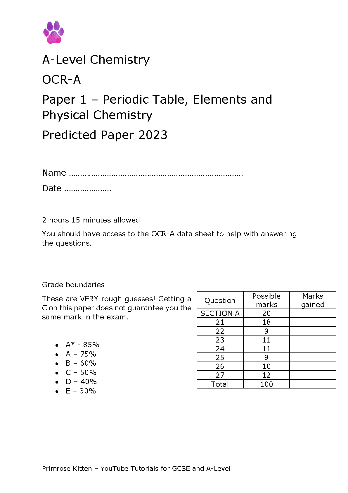 OCR A LEVEL CHEMISTRY A PAPER 1 2023 QUESTION PAPER WITH MARK SCHEME (Periodic Table, Elements and Physical Chemistry). DOWNLOAD OFFICIAL AND VERIFIED OCR A A LEVEL CHEMISTRY PAPER 1 PREDICTED PAPER 2023 on www.hackedexams.com INSTANTLY.