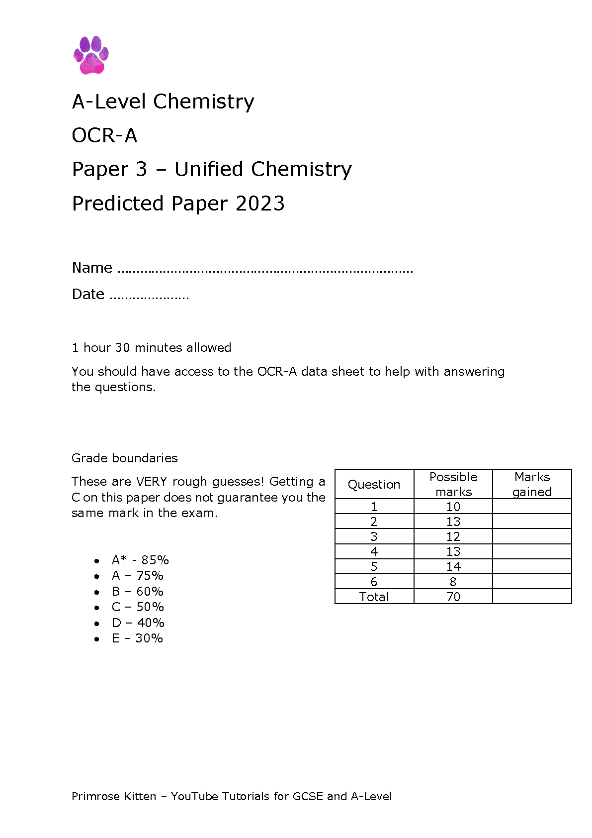 OCR A LEVEL CHEMISTRY A PAPER 3 2023 QUESTION PAPER WITH MARK SCHEME (Unified Chemistry). DOWNLOAD OFFICIAL AND VERIFIED OCR A A LEVEL CHEMISTRY PAPER 3 PREDICTED PAPER 2023 on www.hackedexams.com INSTANTLY.