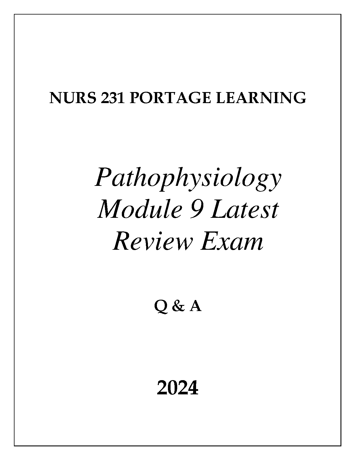 Nurs 231 Portage Learning - Pathophysiology Module 9 Latest Review Exam Q&A 2024 Edition