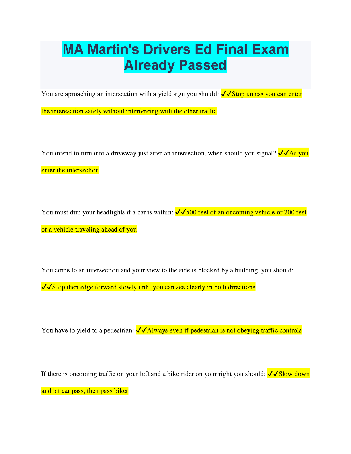 MA Martin's Drivers Ed Final Exam - Already Passed - 2024 Edition - Ace Your Driving Test on the First Attempt - Avoid Resits!