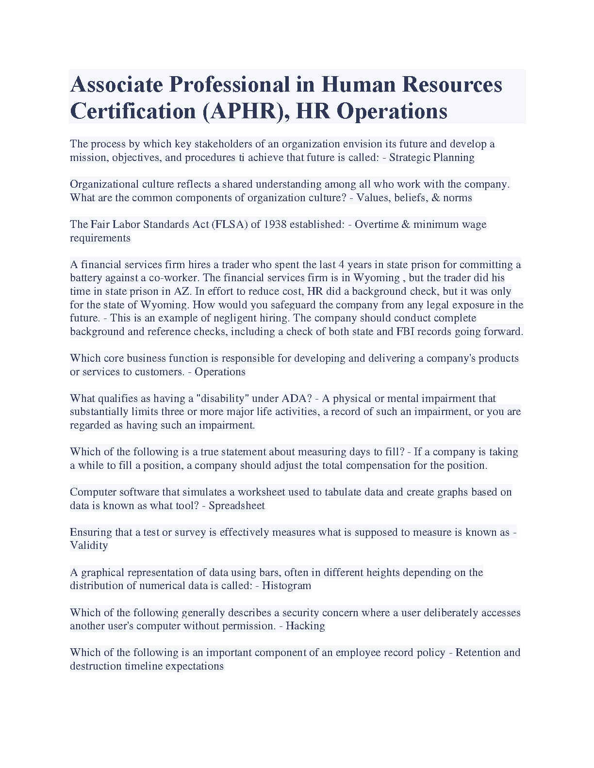 Ace your Associate Professional in Human Resources Certification (APHR) exam with our comprehensive study guide, meticulously crafted for the 2024/2025 academic year. This resource is designed to equip students with the knowledge and strategies needed to pass on their first attempt, avoiding the stress and cost of resits.