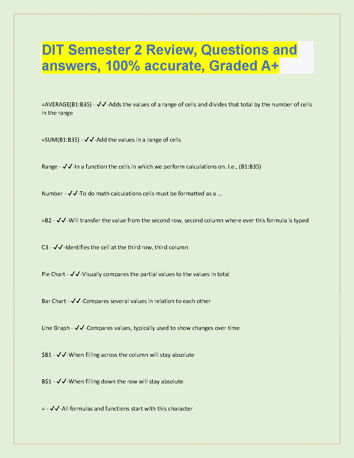 DIT Semester 2 Review, Questions and answers, 100% Accurate, Graded A+