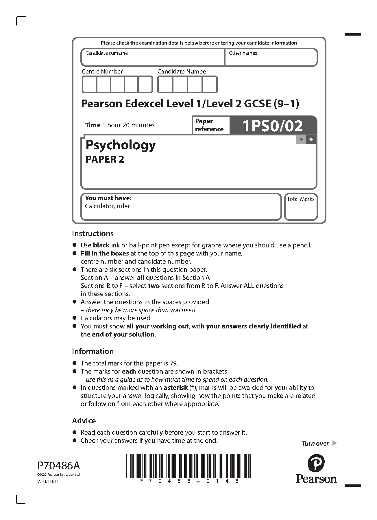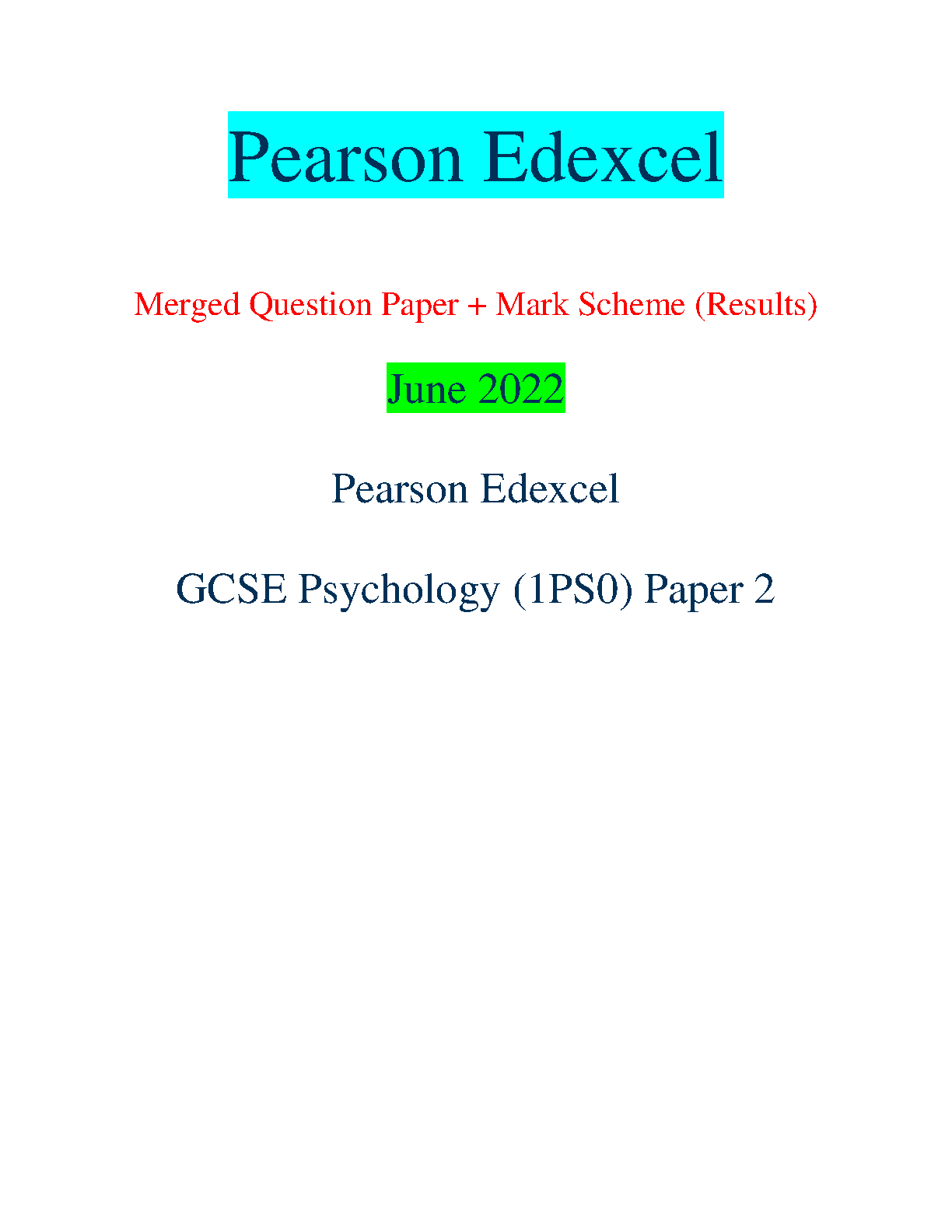 Pearson Edexcel GCSE Psychology (1PS0) Paper 2 June 2022 - Merged Question Paper + Mark Scheme (Results)