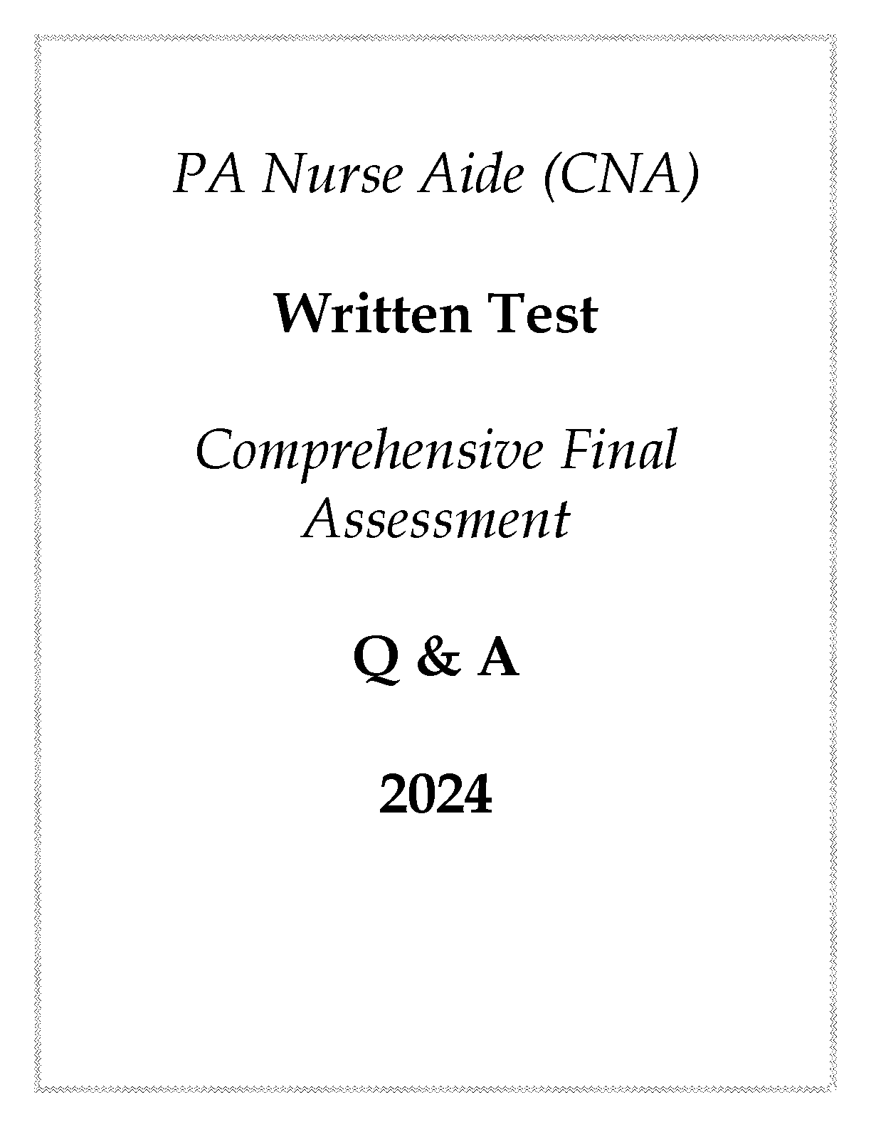 PA Nurse Aide (CNA) 2024 Comprehensive Final Exam Assessment Q&A - Ace Your Exam on the First Attempt!