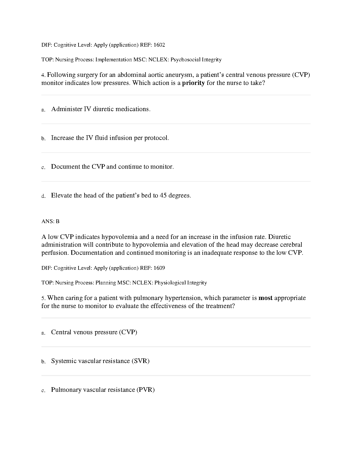 Prepare for your Critical Care nursing exams with confidence! This comprehensive test bank contains a wealth of practice questions covering essential concepts in critical care nursing, designed to help you pass your exams on the first attempt and avoid resits. Each question is meticulously crafted to mirror the style and difficulty level of real exams, providing valuable insights into the most important topics.