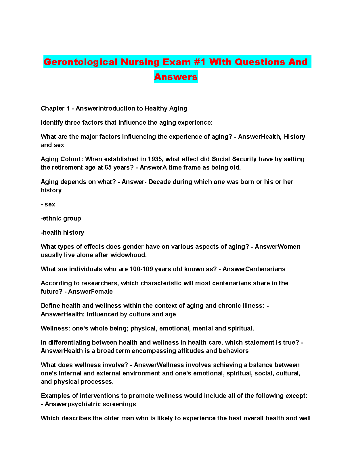 Gerontological Nursing Exam #1 With Questions And Answers by [Author's names] (2024/2025 Edition)