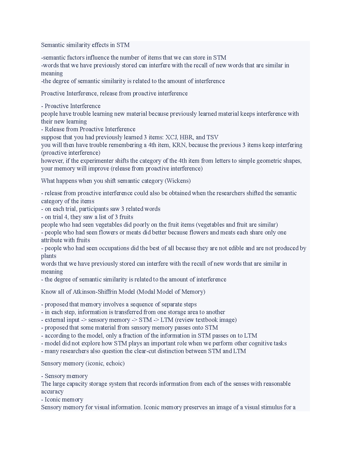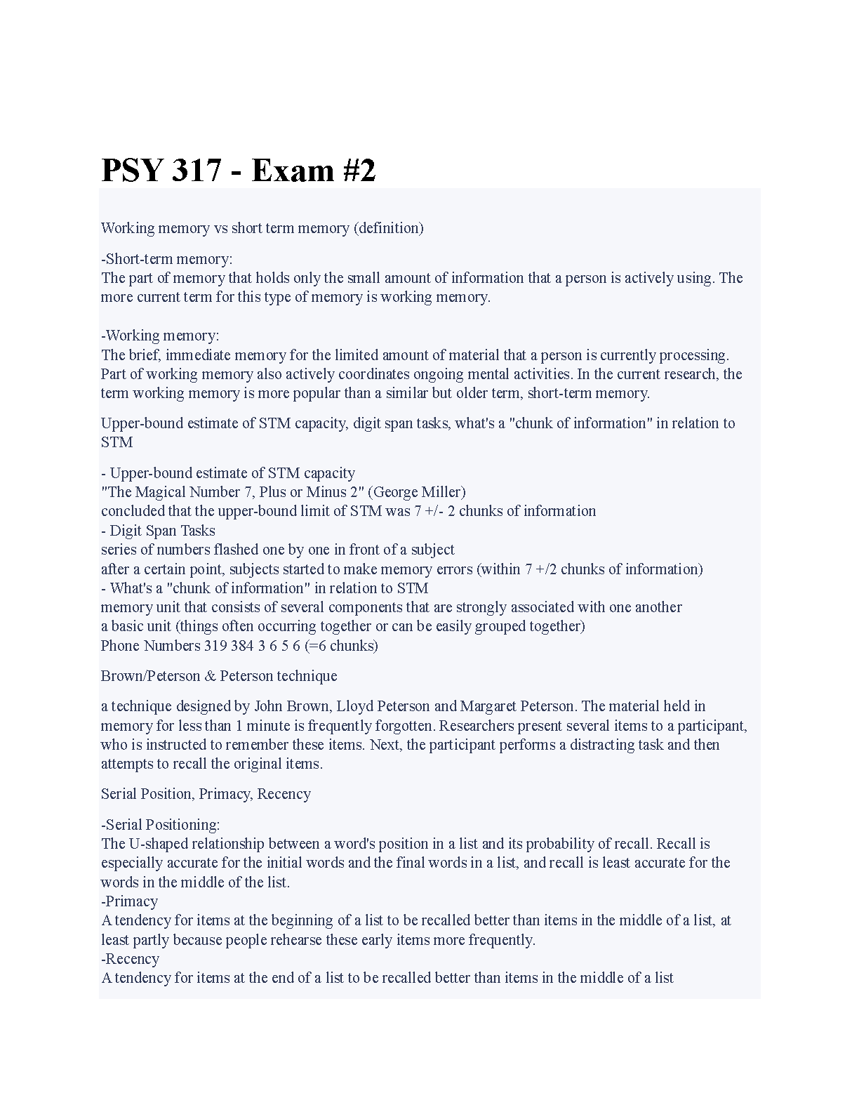 PSY 317 - Exam #2: Working Memory vs. Short-Term Memory for Psychology Students (2024/2025)