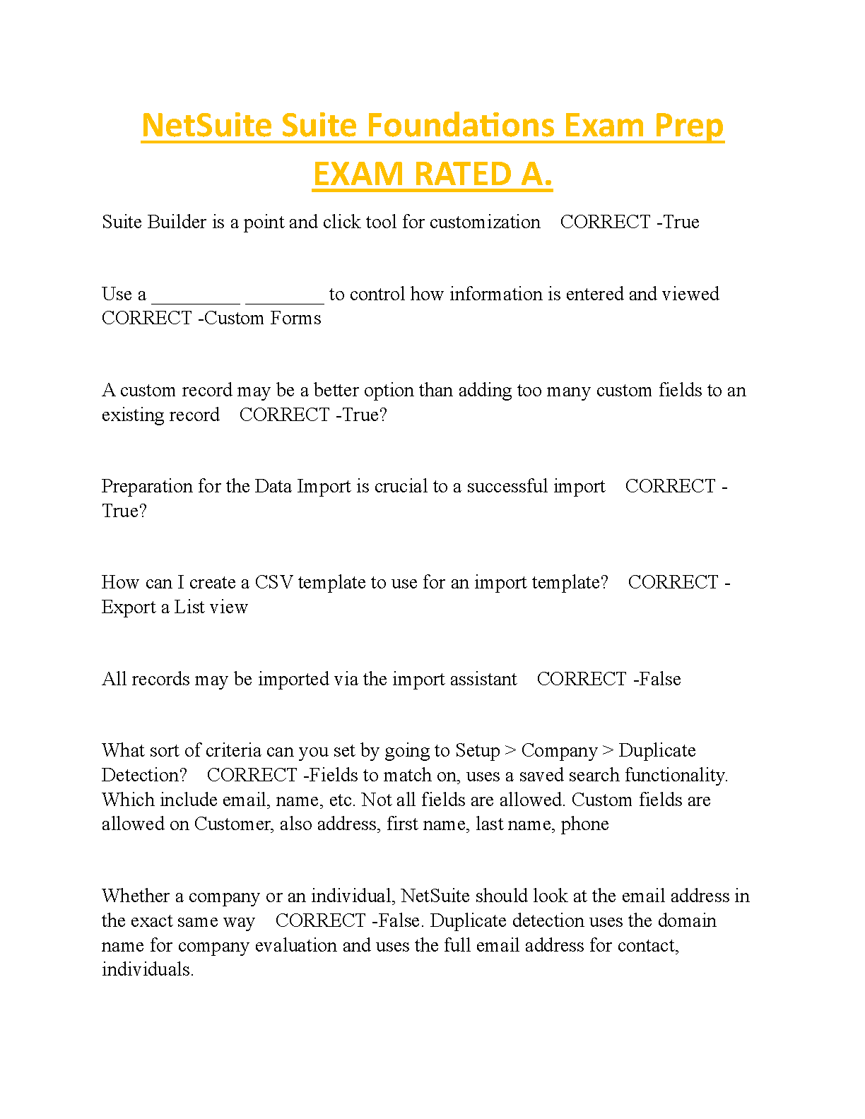 Ace your NetSuite Suite Foundations Exam on your first attempt with our comprehensive practice questions and answers. Our study guide covers essential topics like Suite Builder, Custom Forms, Data Import, and more. Get ready for the 2024/2025 exam and start your NetSuite career with confidence!
