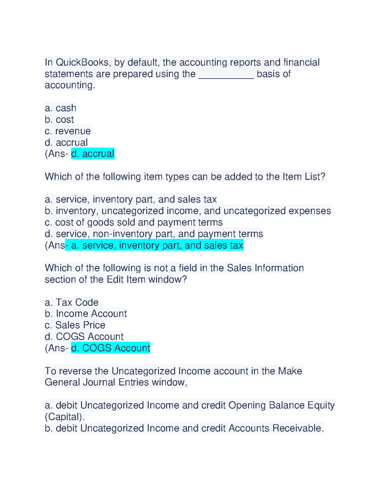 Get ready to ace your QuickBooks Final Exam with this comprehensive resource containing exam-style questions and answers. This essential study aid for the 2024/2025 academic year covers key concepts and provides valuable practice to boost your understanding of QuickBooks software. Ensure a confident and successful exam experience with this invaluable resource.