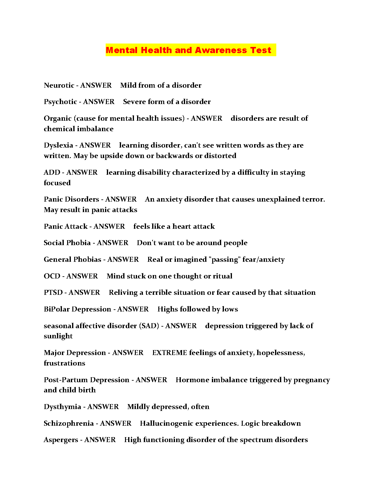 Mental Health and Awareness Test: A Comprehensive Guide for Success in 2024/2025