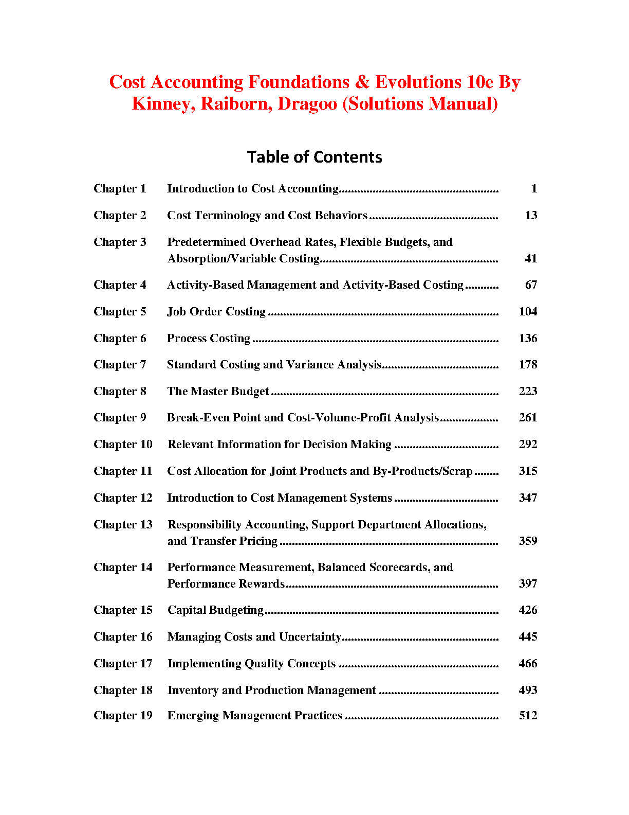 Cost Accounting Foundations & Evolutions 10e By Michael R. Kinney, Paul D. Raiborn, and Kenneth A. Drago Solutions Manual