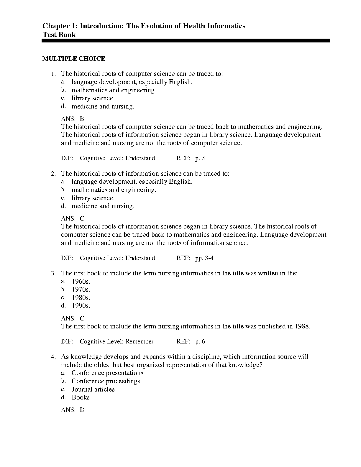 Health Informatics: The Evolution of Health Informatics Test Bank
