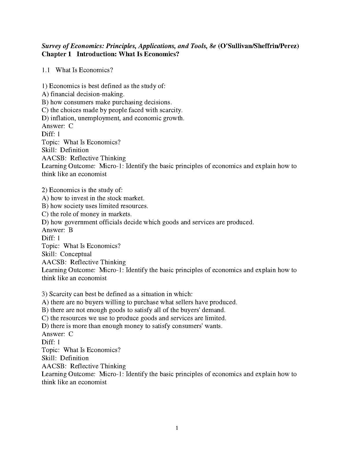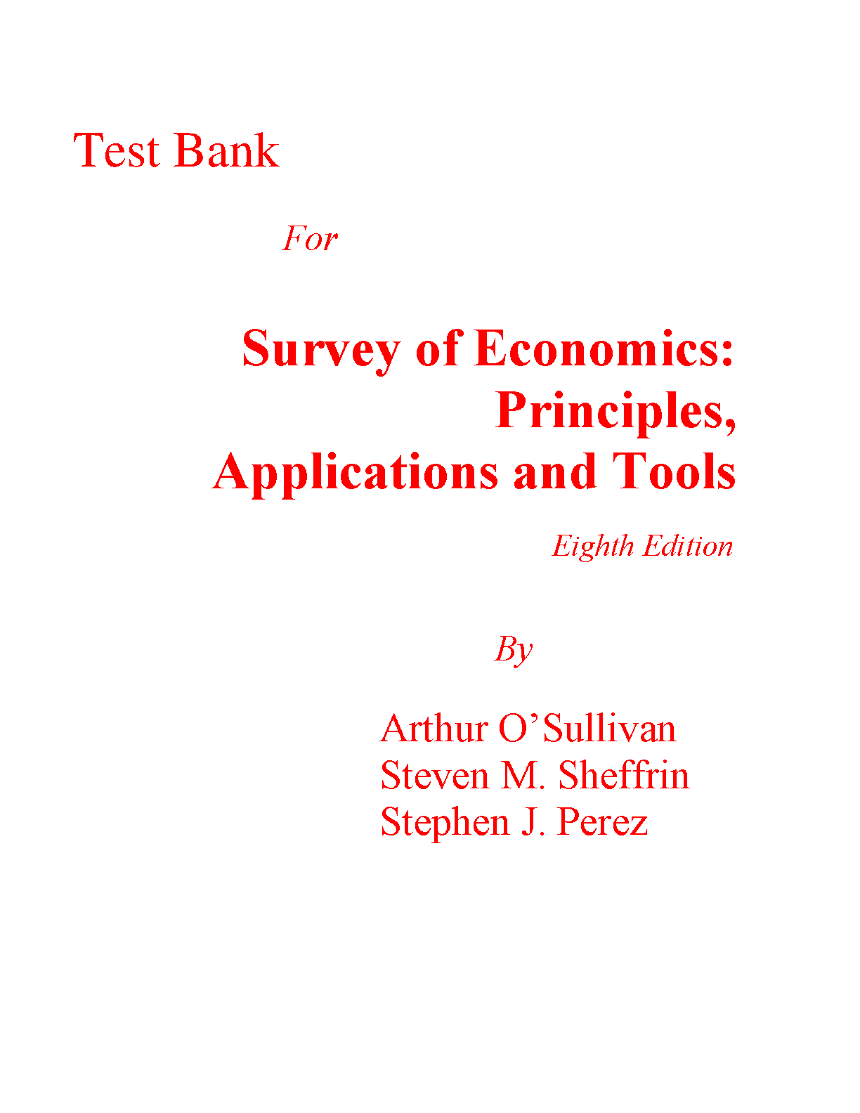 Survey of Economics: Principles, Applications, and Tools 8th Edition Test Bank by Arthur O'Sullivan, Steven M. Sheffrin, and Stephen J. Perez