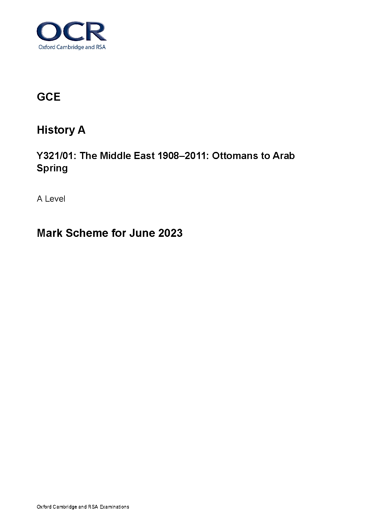 OCR History A Y321/01: The Middle East 1908-2011: Ottomans to Arab Spring - June 2023 Mark Scheme