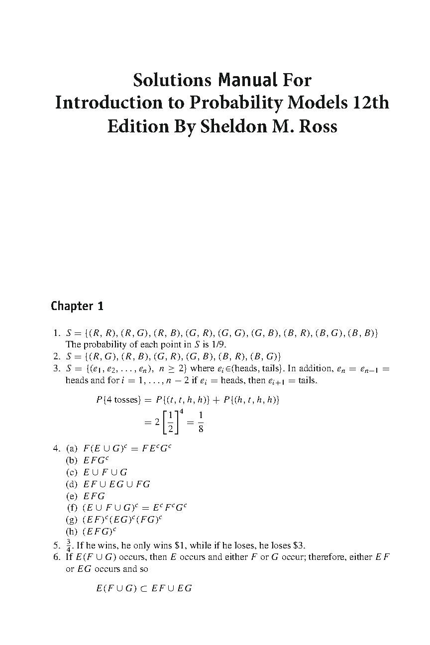 Solutions Manual for Introduction to Probability Models 12th Edition by Sheldon M. Ross