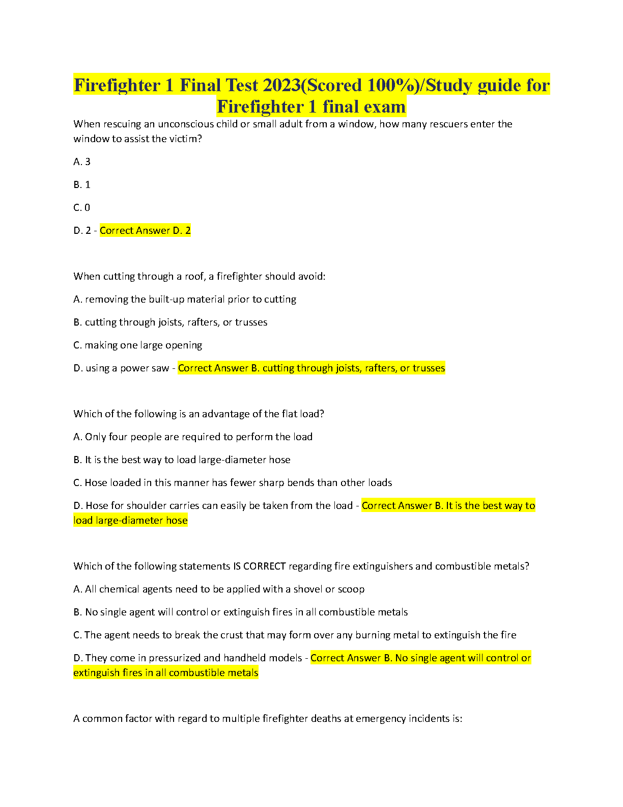 Firefighter 1 Final Test 2023 (Scored 100%)/Study Guide for Firefighter 1 Final Exam by [Author Name] - 2024/2025 Edition